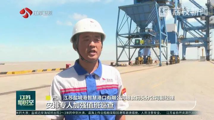 江蘇鹽城港智慧港口有限公司糧食碼頭分公司副經理嚴浩說:“安排專人加強值班巡查,全方位、不間斷地排查隱患,確保各項防護措施萬無一失。”