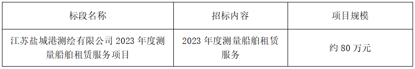 一、?江蘇鹽城港測(cè)繪有限公司 就江蘇鹽城港測(cè)繪有限公司2023年度測(cè)量船舶租賃服務(wù)項(xiàng)目進(jìn)行公開招標(biāo),誠邀合格的投標(biāo)人前來報(bào)名參加。
