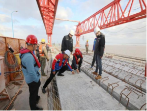 “今日已完成P72-76南半幅護(hù)輪坎澆筑、P22橫梁舊橋板切割拆除、P26/27南半幅橫梁鋼筋綁扎立模、P38/C鉆孔、P36/C沖擊鉆引孔、P32/62排架水下清障以及P67-68預(yù)制空心板安裝共計(jì)七項(xiàng)工作,無安全隱患發(fā)生。”