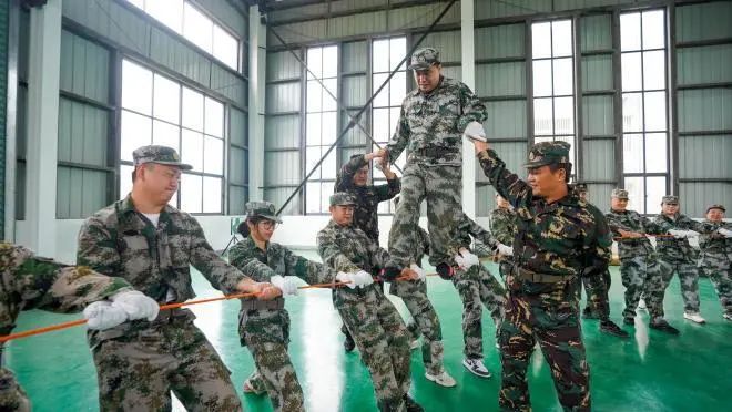 在訓練場上,烈日炎炎下,學員們身姿挺拔如松,汗水浸透衣衫卻依然保持昂揚斗志;戰術訓練中,他們匍匐前進、跨越障礙,在摸爬滾打中突破自我;團隊拓展項目里,“動力繩圈”“卡牌風云”“眾志成城”等環節,讓大家深刻體會到溝通協作、相互信任的重要性。“剛開始覺得很累,但看到身邊的伙伴都在堅持,我告訴自己絕不能掉隊。通過這次軍訓,我不僅收獲了體能上的提升,更學會了如何在團隊中發揮自己的力量。” 參訓學員感慨道。