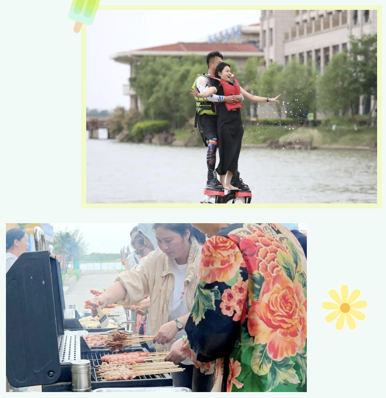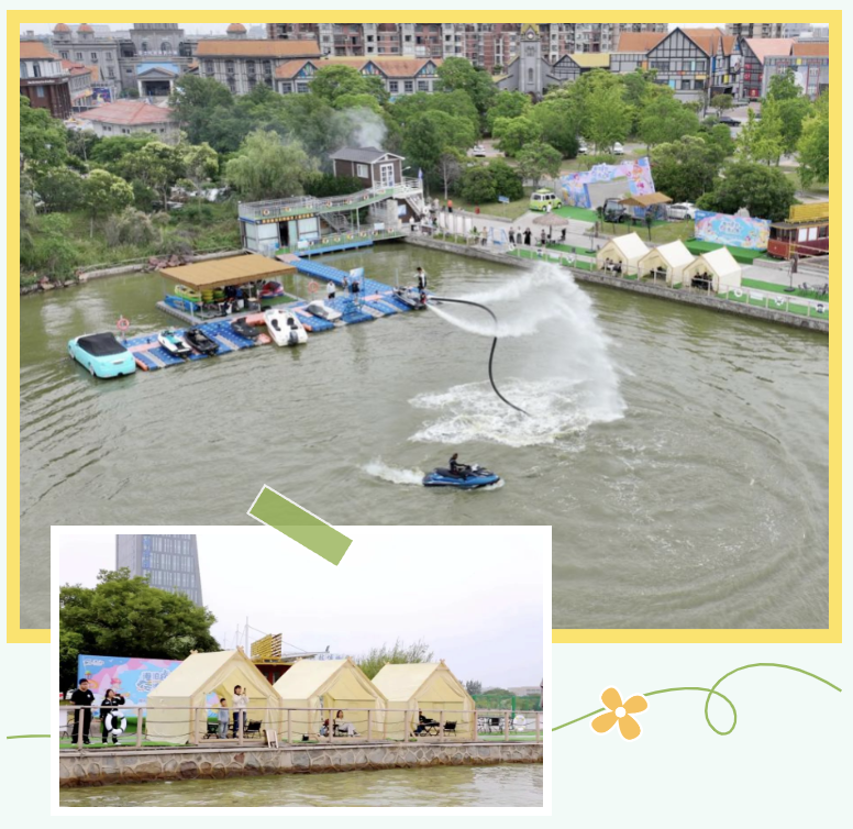 此次“港泊狂歡?去浪一夏”夏日盛宴不僅在游客接待量上表現出色,在推動文旅集團“五朵金花”產業發展方面也成效顯著。除了水上運動項目,鹽城港文旅集團還注重配套服務的完善,全力滿足游客游、購、娛、商及吃、喝、玩、樂的多樣化需求。日月湖畔錯落有致的帳篷營地,燒烤區飄散的煙火氣與日月湖相映成趣,為游客提供了親近自然的休憩空間;莎士比亞國際商貿小鎮充滿異域風情,游客在此選購全球好物。這些豐富的配套設施,使得日月湖不僅是水上運動的樂園,更是綜合性的休閑度假勝地,進一步提升了對周邊游客的吸引力,無論是家庭出游還是團隊團建,都能在這里找到屬于自己的樂趣。