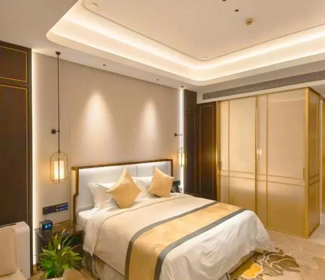 407間雅致客房,30㎡起跳的寬敞格局,是秋日舒展身心的最佳畫布。憑窗遠(yuǎn)眺,花園層林盡染,日月湖碧波映照著高遠(yuǎn)秋空。2025煥新升級的智能客房,讓舒適觸手可及:一鍵切換閱讀暖光或安眠模式,智能窗簾開合間,湖光秋色盡攬入懷。