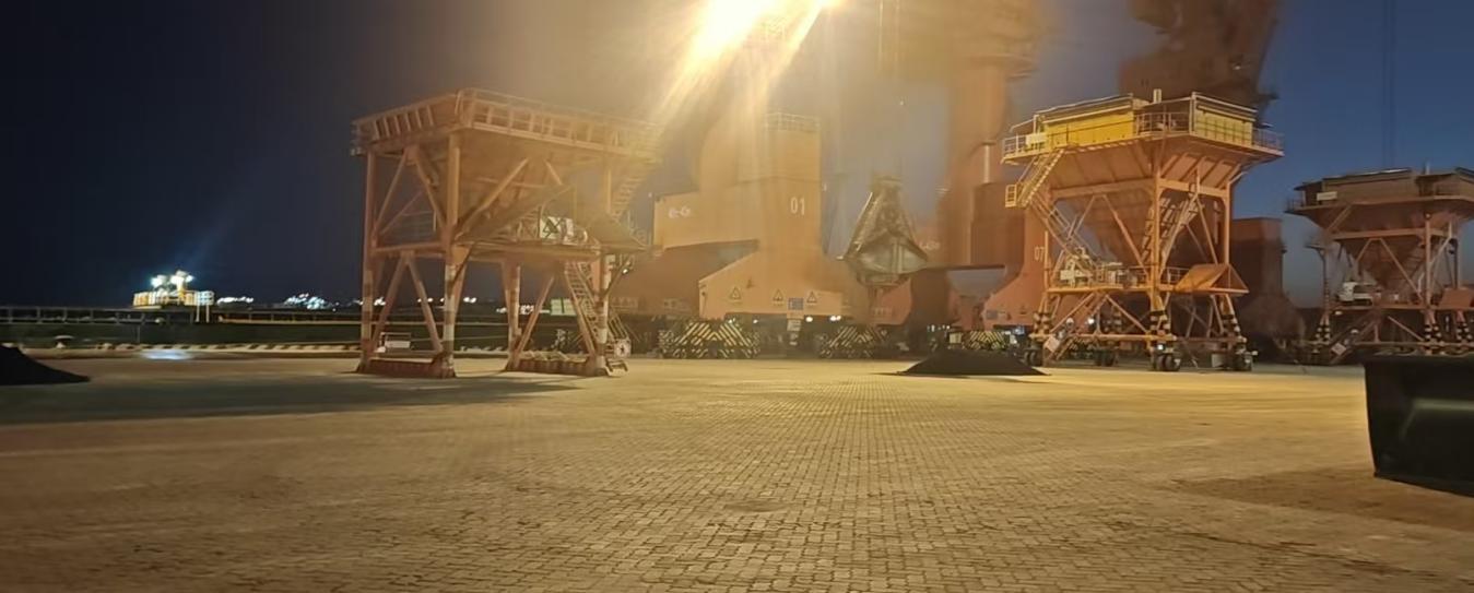 船舶抵港前,現(xiàn)場(chǎng)調(diào)度人員根據(jù)實(shí)地實(shí)情統(tǒng)籌協(xié)調(diào),對(duì)泊位前沿、堆存場(chǎng)地等做到全流程銜接;生產(chǎn)運(yùn)營(yíng)負(fù)責(zé)人積極聯(lián)系海關(guān)、海事等口岸單位優(yōu)化通關(guān)流程,為貨物快速通關(guān)開辟綠色通道;卸貨前,門機(jī)司機(jī)及時(shí)查驗(yàn)抓斗作業(yè)精準(zhǔn)度和作業(yè)穩(wěn)定性;針對(duì)石油焦易揚(yáng)塵等特點(diǎn),設(shè)置專用隔離區(qū)域,同步啟用噴淋降塵系統(tǒng),在卸船、轉(zhuǎn)運(yùn)、堆存各環(huán)節(jié)實(shí)施全程濕法作業(yè),全過程實(shí)現(xiàn)“零污染、零損耗、零事故”。