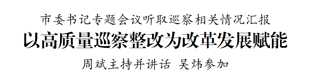 7月10日,市委書記周斌主持召開市委書記專題會議,深入學習領會習近平總書記關于黨的自我革命的重要思想和巡視工作的重要論述,聽取八屆市委第七輪巡察、第三輪巡察整改督查評估和近幾輪巡察整改日常監督情況匯報,研究下一階段巡察工作。市委副書記吳煒參加。