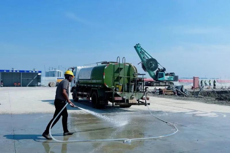 一是提高環(huán)境整潔度。在施工期間,對施工現(xiàn)場主要通道、道路進出口、材料加工區(qū)、生活辦公區(qū)進行硬化處理。安排灑水車輛定時傾灑施工便道,確保道路干凈無淤泥、無浮土、無積水。做好圍擋全封閉、土方挖運作業(yè)降塵、渣土車輛密閉運輸、裸露地面全覆蓋等工作,將揚塵管控作為日常工作常抓不懈。