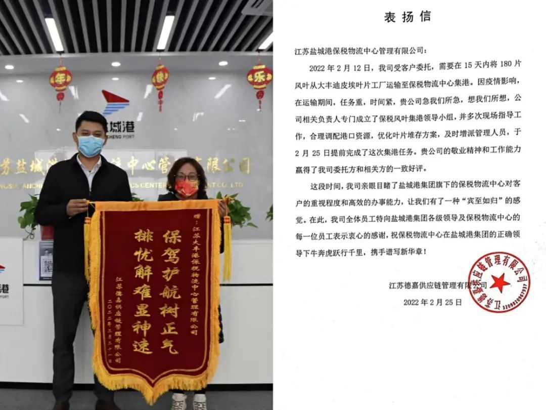 服務(wù)就是效益、服務(wù)就是生命,下一步,保稅物流中心將在鹽城港集團黨委的正確領(lǐng)導(dǎo)下,不斷提升服務(wù)水平與服務(wù)能力,以拼搏的干勁和專業(yè)的服務(wù)留住老客戶、吸引新客戶,為鹽城港高質(zhì)量發(fā)展作出新的更大貢獻。