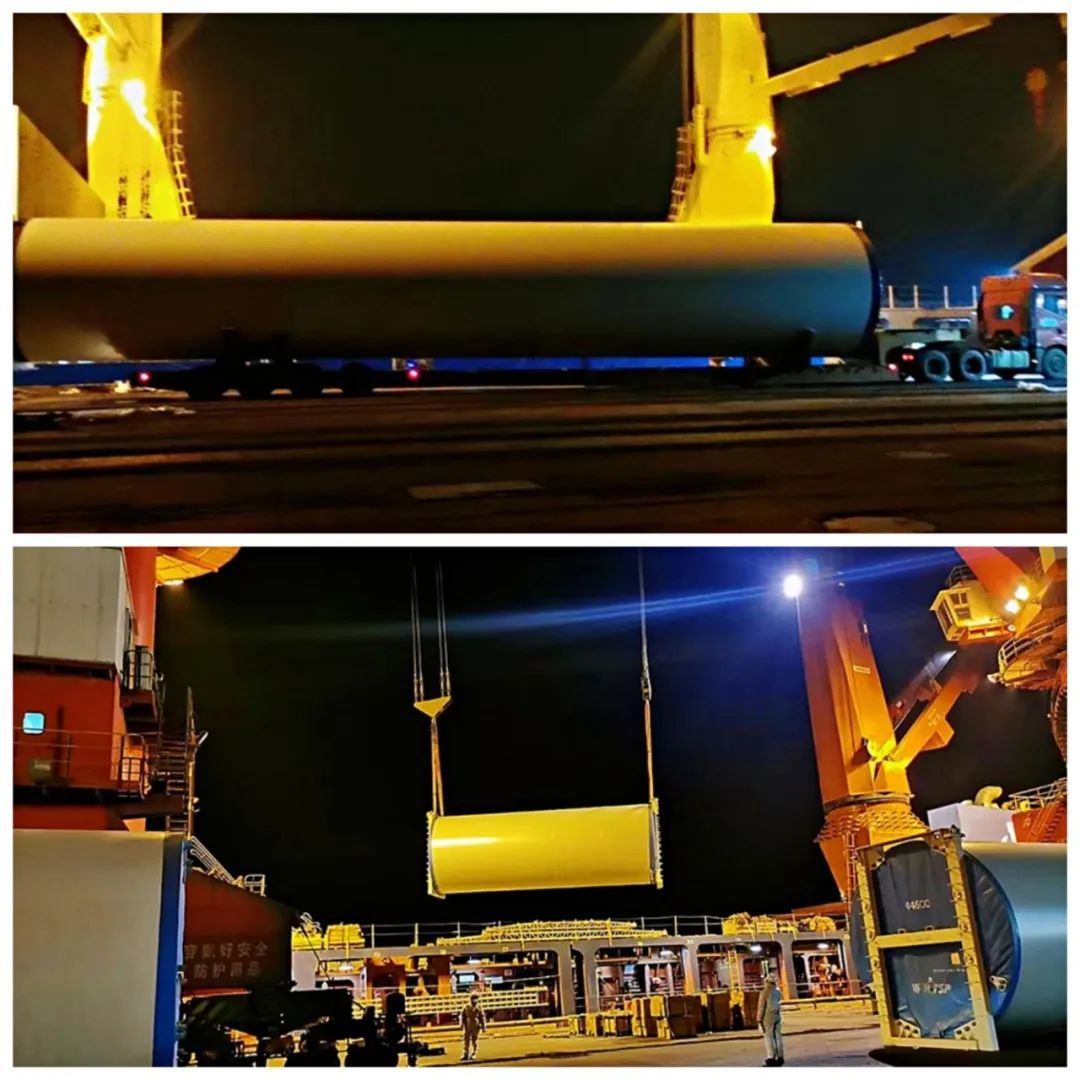 目前國(guó)內(nèi)新冠疫情多點(diǎn)散發(fā),防疫形勢(shì)嚴(yán)峻復(fù)雜。通用碼頭分公司生產(chǎn)經(jīng)營(yíng)科協(xié)同各科室,嚴(yán)格按照防疫要求,制定出多套卸船方案,科學(xué)調(diào)度碼頭人力和設(shè)備,為卸船做好充足準(zhǔn)備。大件班組人員克服天氣、環(huán)境等種種困難,針對(duì)該風(fēng)電機(jī)組重量大、尺寸大的特點(diǎn),利用通用碼頭門機(jī)緊密配合克令吊共同作戰(zhàn),全力保障安全生產(chǎn)高效有序,確保該批次風(fēng)電設(shè)備順利卸至堆場(chǎng)。由于風(fēng)電設(shè)備對(duì)存放堆場(chǎng)的尺寸、荷載、坡度要求較高,既要滿足風(fēng)機(jī)主機(jī)對(duì)于地基承載力,還要能及時(shí)排除雨水,通用碼頭分公司根據(jù)風(fēng)電設(shè)備組件的特殊性,對(duì)堆場(chǎng)進(jìn)行科學(xué)劃分,把同類型設(shè)備堆存在相同區(qū)域,同時(shí)也為出貨時(shí)成批集中運(yùn)出提供便捷。