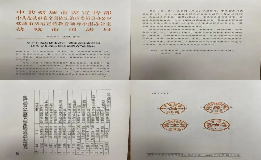 11月18日,射陽港區法治文化陣地榮獲鹽城市首批“落實普法責任制法治文化陣地建設示范點”稱號。潛移默化弘揚法治文化,滿足職工日常法律需求,全方位提高全體職工法治素養,為港區經營發展提供有力的法治保障。