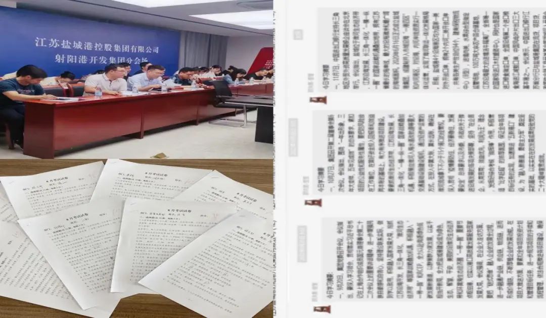 今年以來,射陽港區積極探索強化學習教育新舉措,主動學習,夯實業務知識,創新性推出“日應知、周考察、線上答題”學習教育新方式。在不斷學習中激發職工工作熱情、提高工作效率,保證良好的工作狀態,做到學以致用,干到實處。全力打造一支“看得出、站得出、豁得出”的港口發展主力軍,爭做鹽城港發展路途中的“護旗手”。