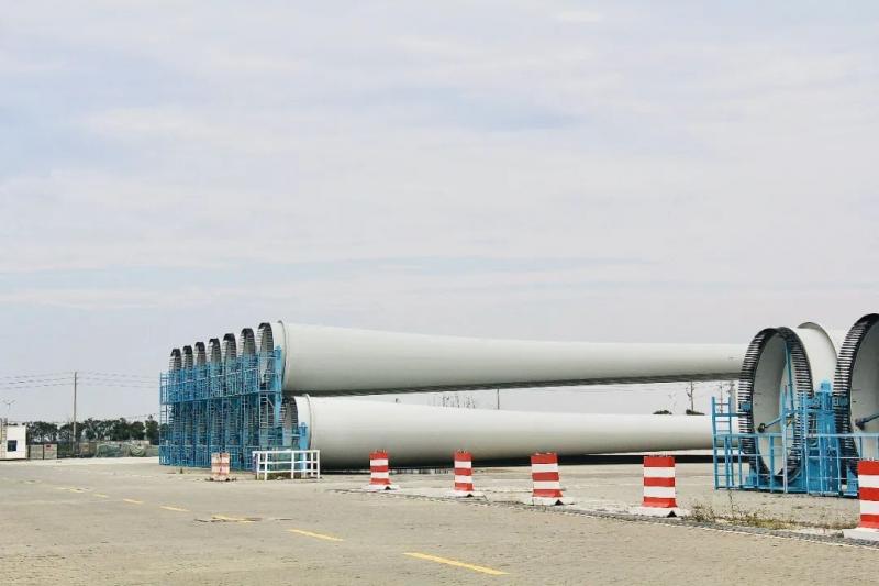位于碼頭北側,這一排排、一列列排布整齊的是射陽港區(qū)打造風光裝備產業(yè)特色港的閃亮名片,也是射陽港區(qū)堅持集團分星級定價經營思路、執(zhí)行“一主一輔一攬貨”運營模式的響亮成果。