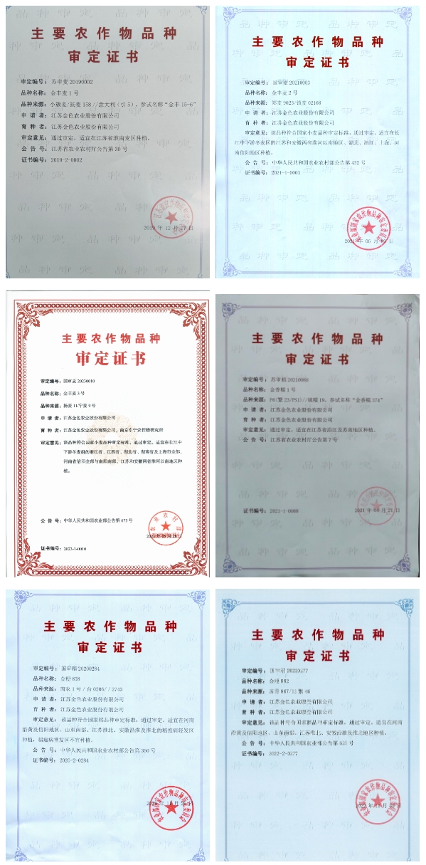 育種是一項復雜繁瑣的系統性工作,它不僅考驗著育種工作者的知識和經驗,更極大地考驗著育種工作者的耐心。作為中國共產黨員,錢進同志研究生畢業以后毅然來到農業科研一線,工作中他不斷學習先進的遺傳育種知識,更在不斷提升自己的科研水平和能力,在他和同事們的工作同努力下,2019年江蘇金色農業股份有限公司自主培育的小麥品種金豐麥1號通過江蘇省審定;2020年水稻新品種金粳858通過國家審定;2021年自主培育小麥新品種金豐麥2號通過國家審定、水稻新品種金香糯1號通過江蘇省審定;2022年水稻新品種金粳882通過國家審定;2023年小麥新品種金豐麥3號通過國家審定。