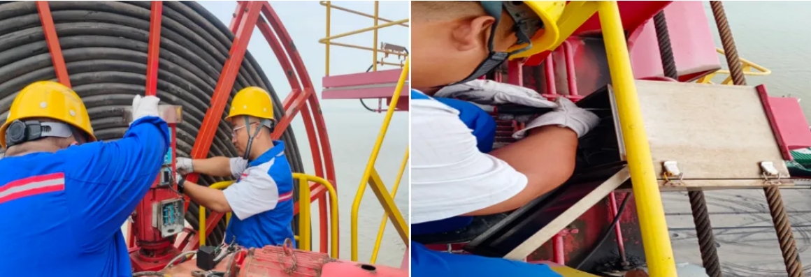 鹽城港射陽港區設備班組嚴格遵守設備操作、使用和維護規程,不畏酷暑,加大對碼頭8臺門機電纜卷盤維護工作,及時修復和更換有損部件,提高門機工作效率;利用集中智能潤滑系統,遠程操控、合理控制每個潤滑點注油量,精準查看故障分支箱,保持各部位齒輪箱、鉸點等“關節”靈活,延長門機使用壽命,為港區生產經營提速增效。